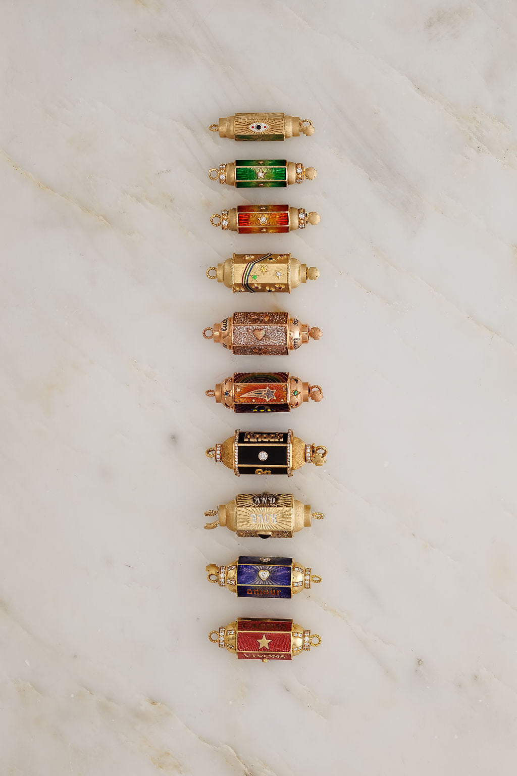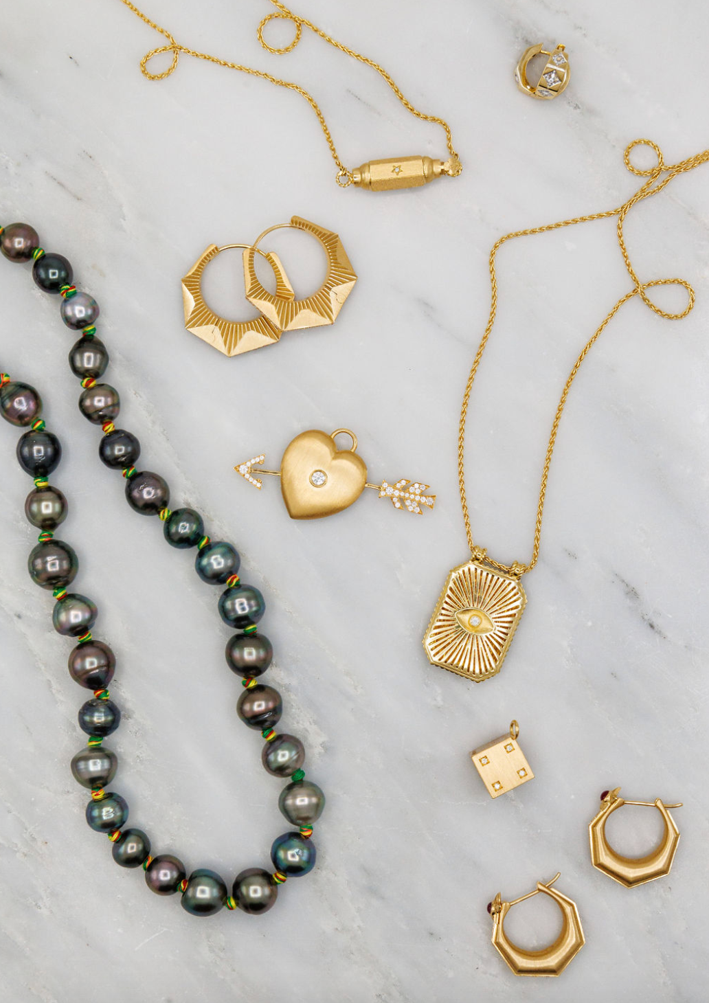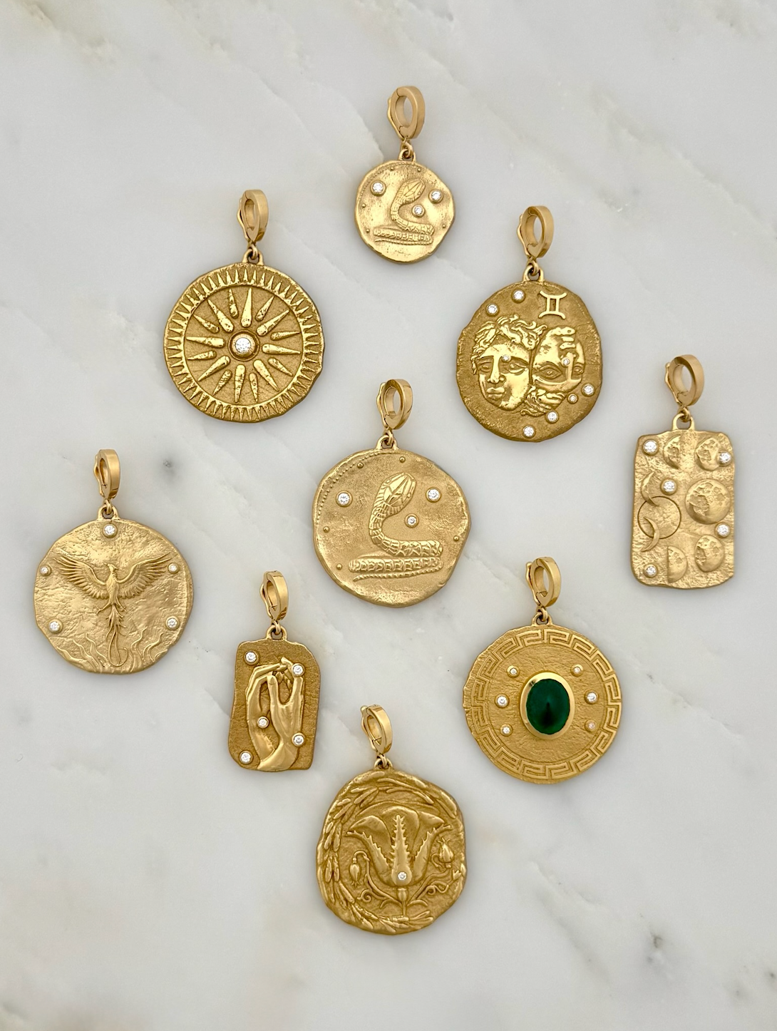 Fine jewelry rooted in Old World symbolism and classical motifs, reimagined through a modern lens. Each piece of AZLEE jewelry is handcrafted in Los Angeles with rich gold, intricate detailing, and ethically sourced diamonds. The designs feel both ancient and fresh, like contemporary heirlooms shaped by history, art, and mythology.