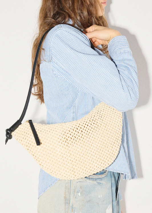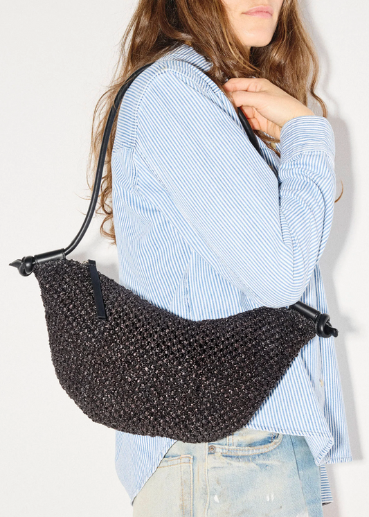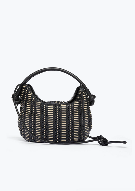 Elis Mini Crescent Bag in Black Vanilla Woven
