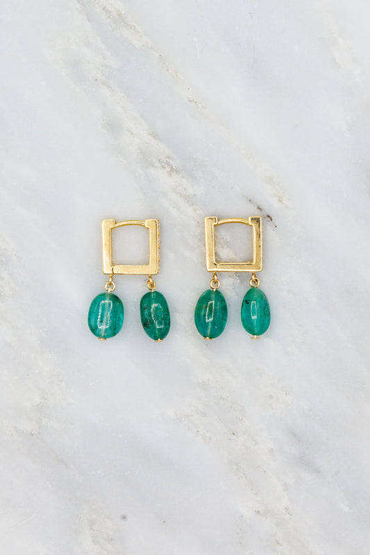 Mosaic Moss Diamond and Emerald Hoops
