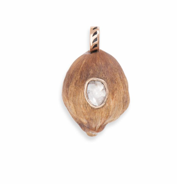 One-of-a-Kind Champagne Diamond and Solomon Islands Cowrie Shell Pendant