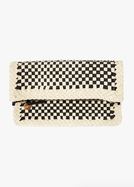 Foldover Clutch with Tabs in Black & White Checker