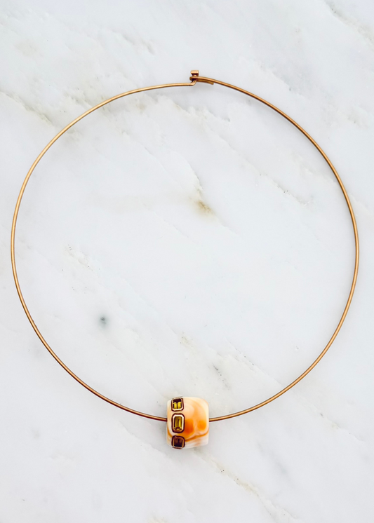 Petite Onyx & Garnet Cowry Bead Anklet in Orange