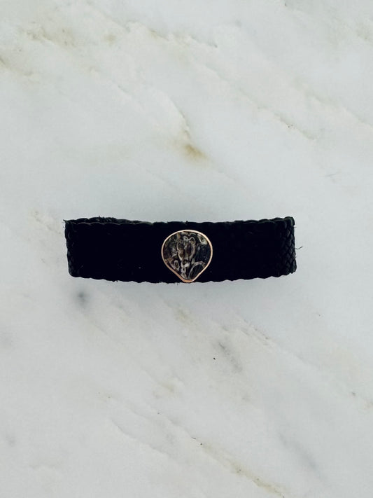 Leather Braided Bracelet with Red Tiger Eye Shell
