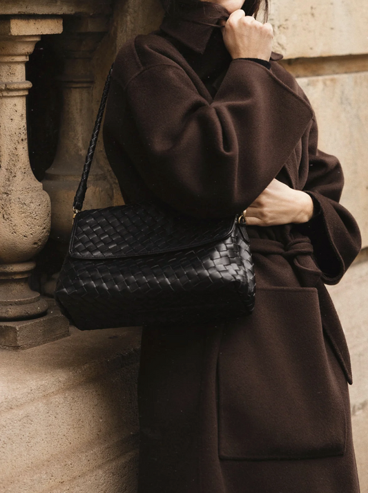 Sold outVendor:CLARE V.Grande Fanny in Tan Rattan Leather
