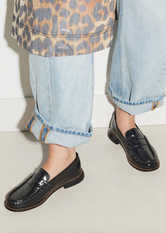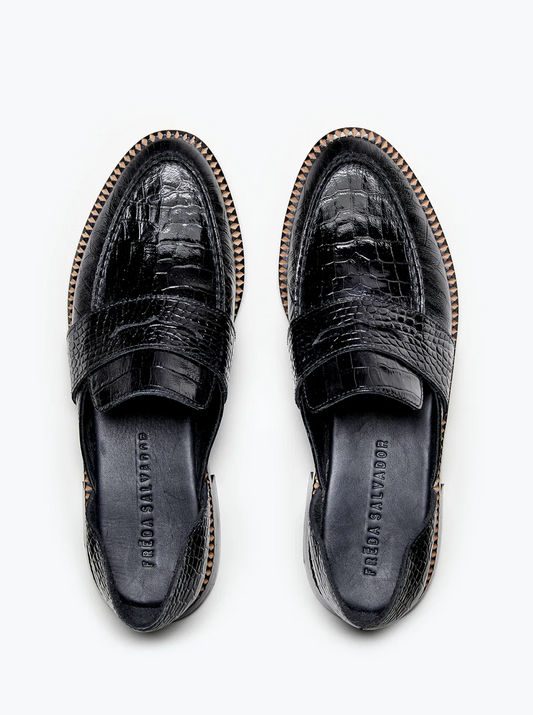 Tash Croc Embossed D'Orsay Moccasin in Black