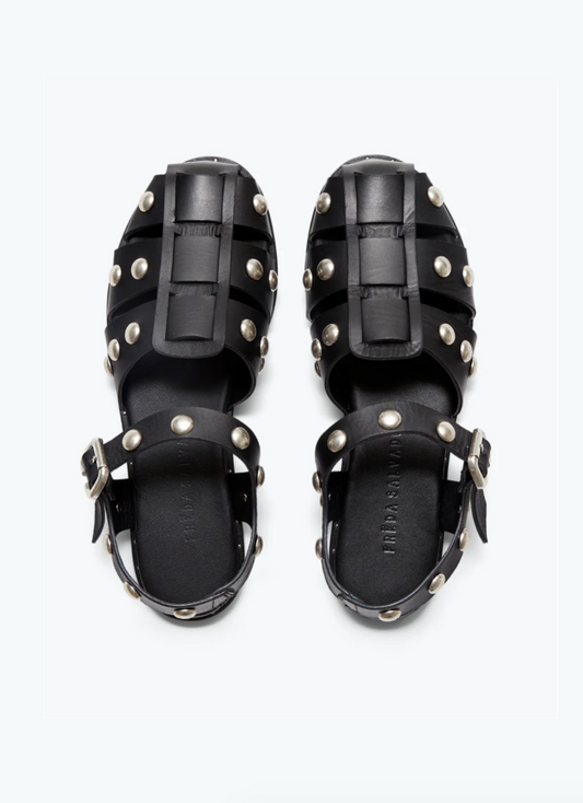 Sera Silver Studded Fisherman Sandals in Blue Suede