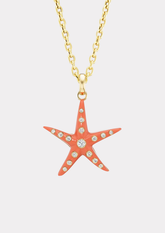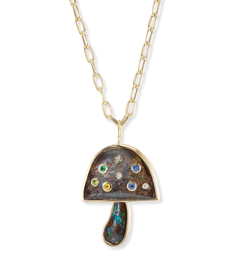 Large Magic Mushroom Pendant with Coral & Rainbow Moonstone and Diamonds
