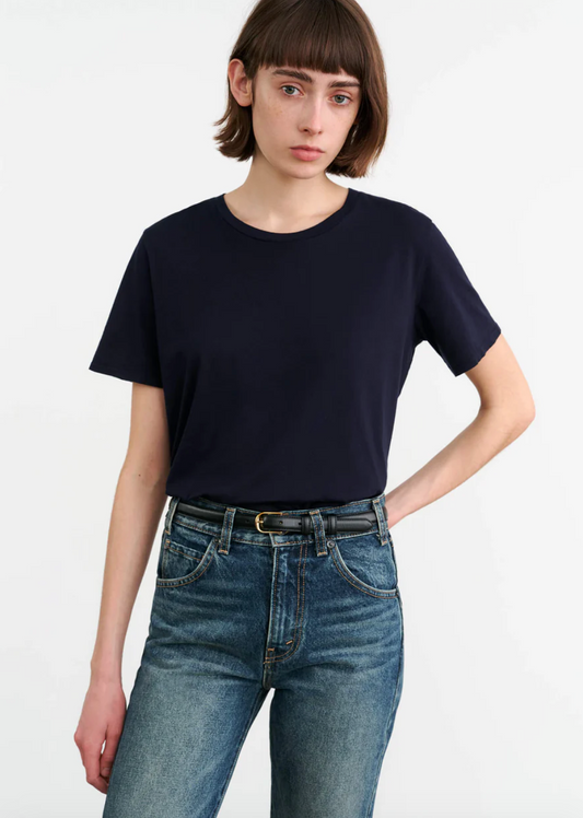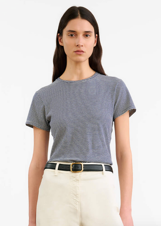 Lana Crewneck Tee in Ivory & Navy Stripe