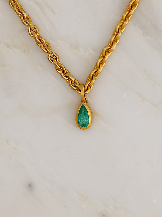 One of a Kind Pear Emerald Ziggurat Pendant
