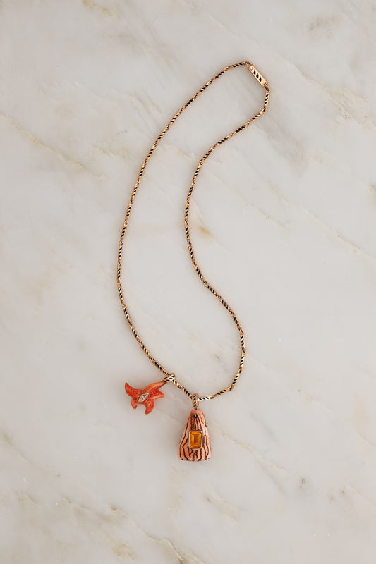 Petite Coral Starfish Charm with Marquise Diamond