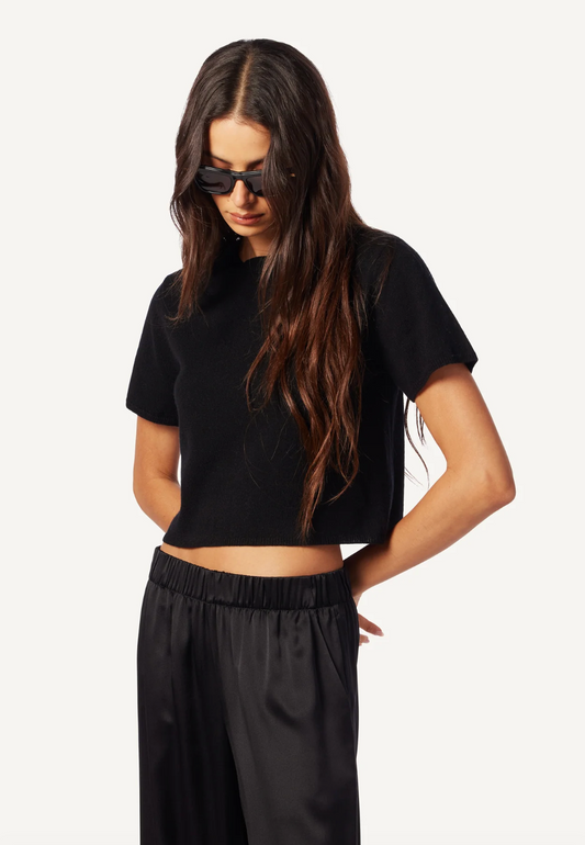 Charleston Relaxed Cashmere Crewneck Tee in Black