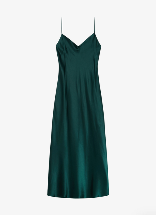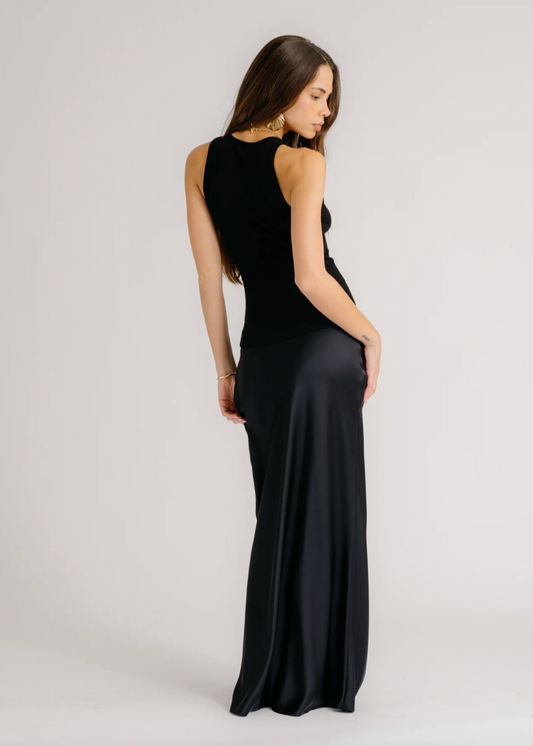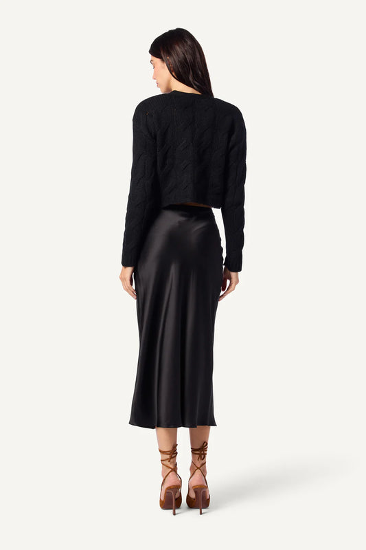 Miranda Scallop Trim Silk Midi Skirt in Black