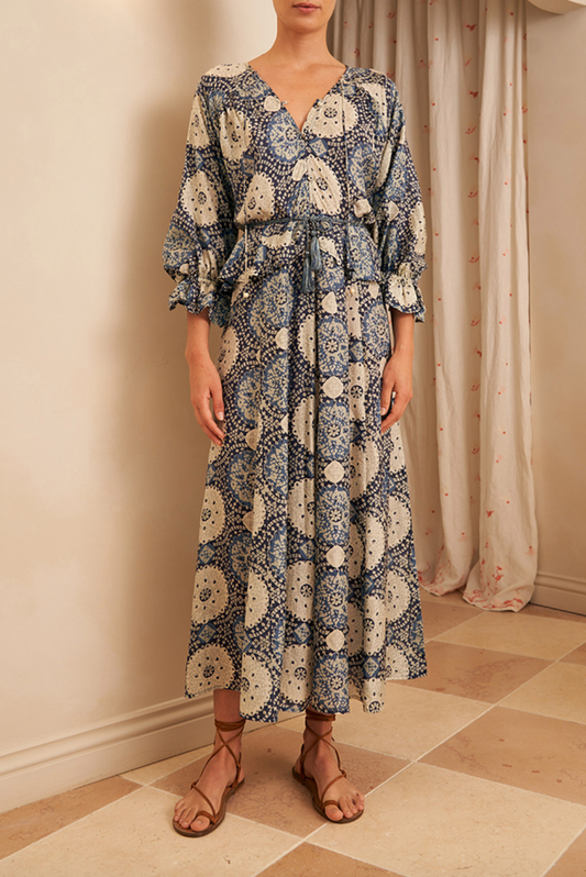 Sera Silver Studded Fisherman Sandals in Blue Suede