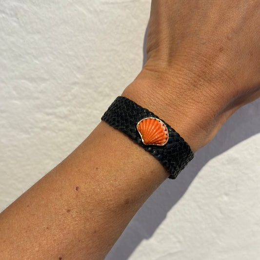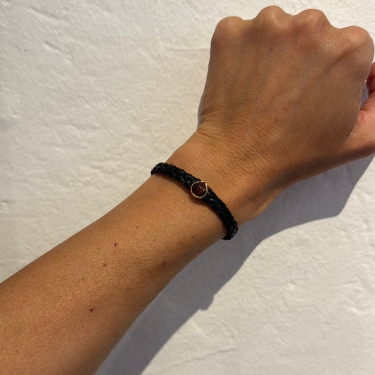 Leather Braided Bracelet with Red Tiger Eye Shell