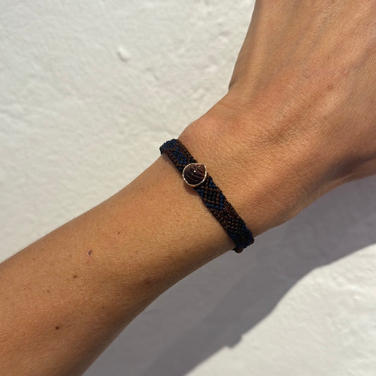 Blue Tiger Eye & Garnet Cowry Bead Bracelet in Gray
