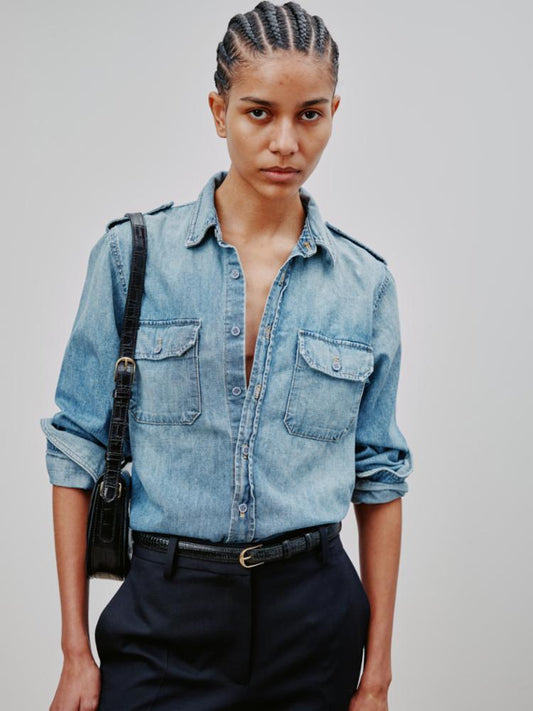 Abbott Denim Top in Light Blue