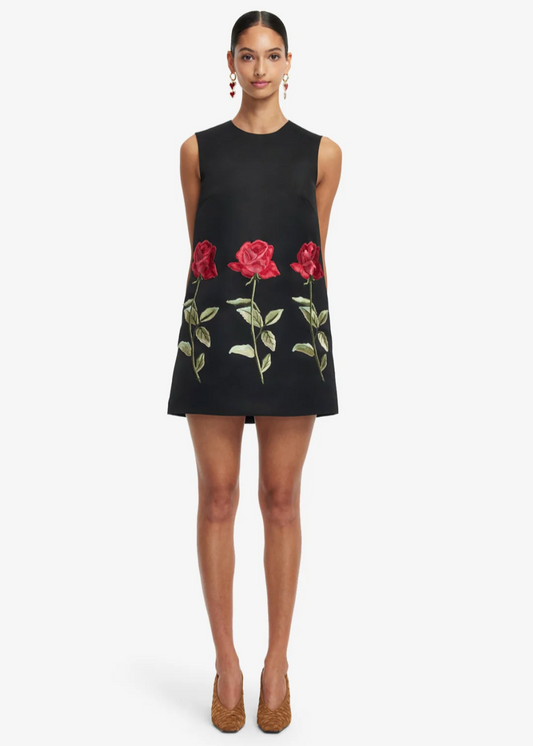 Duchesse Satin Half Sleeve Tunic Dress in Nero