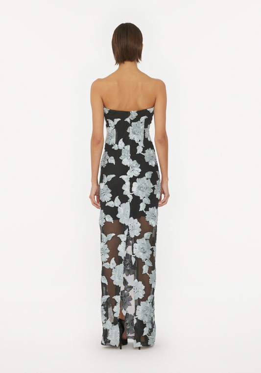 Ava Appliqué Floral Bustier Maxi Dress