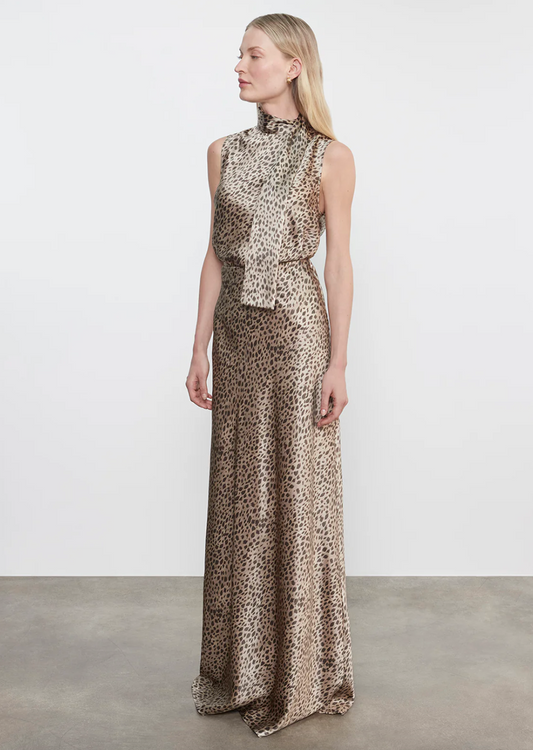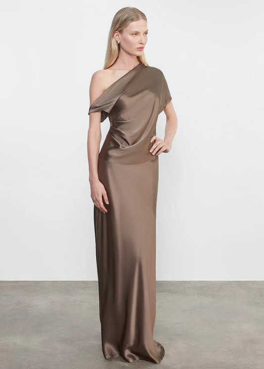 Silk Satin Asymmetrical Drape Top in Mushroom