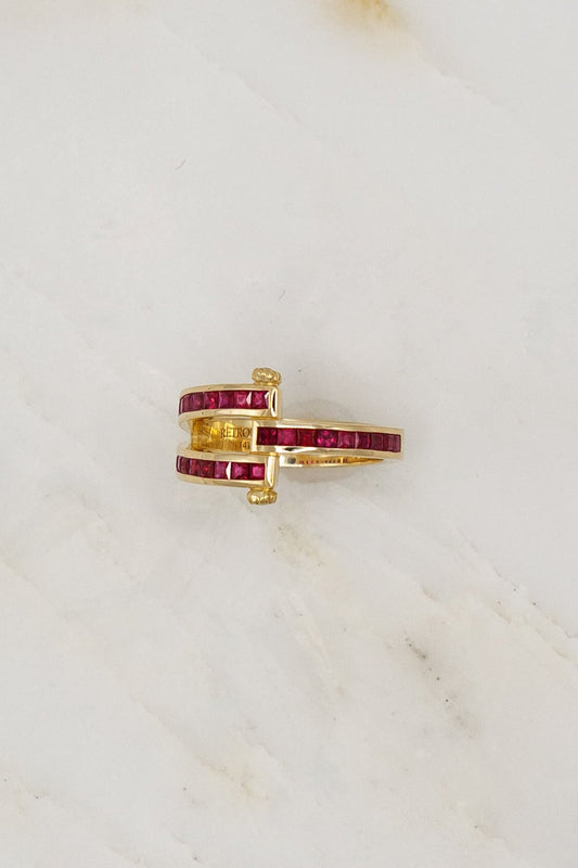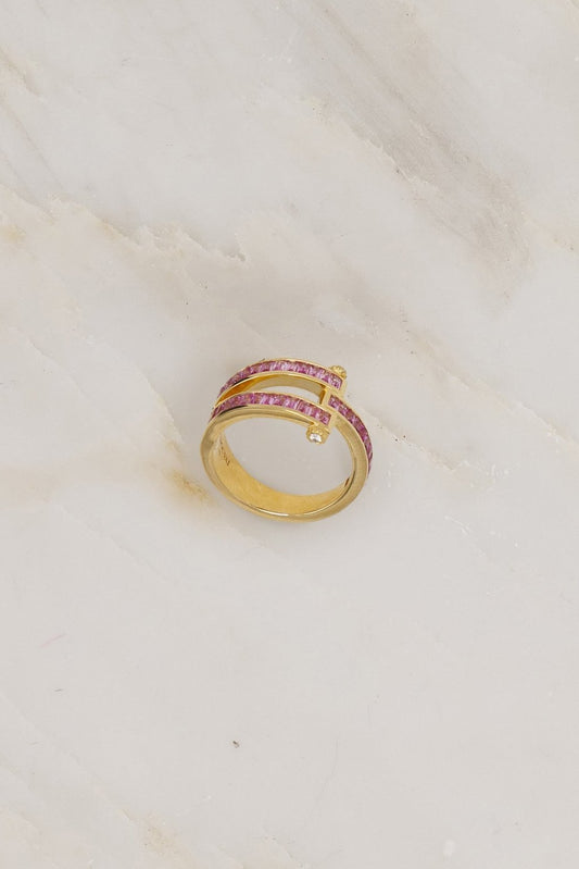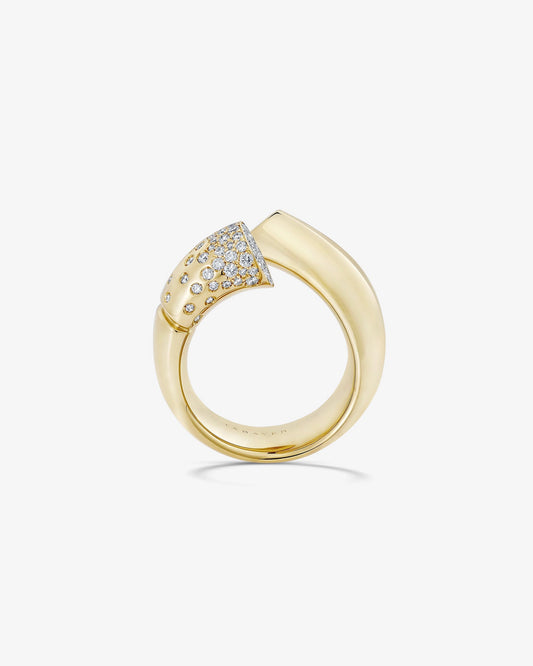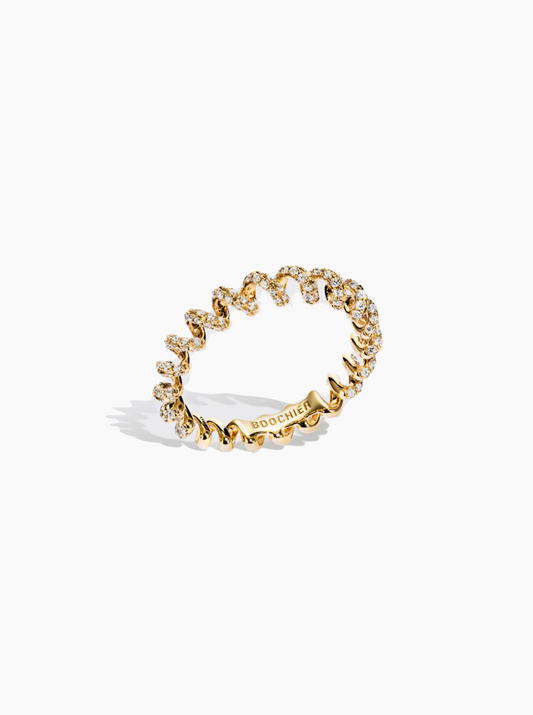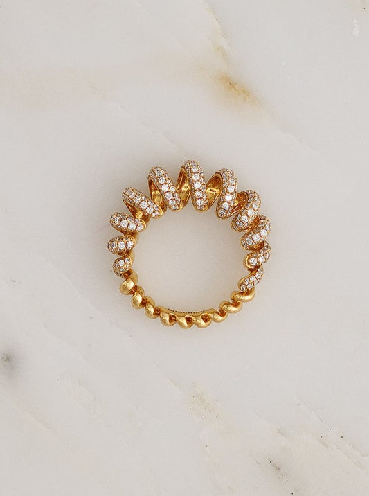 Mini Yellow Gold Slinkee Ring with Diamonds