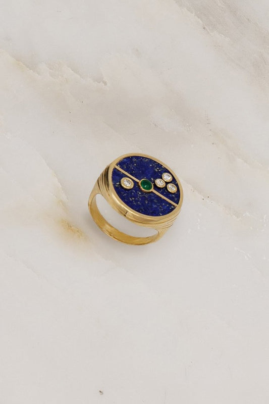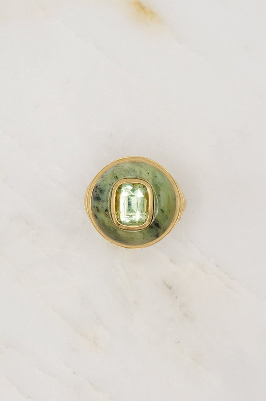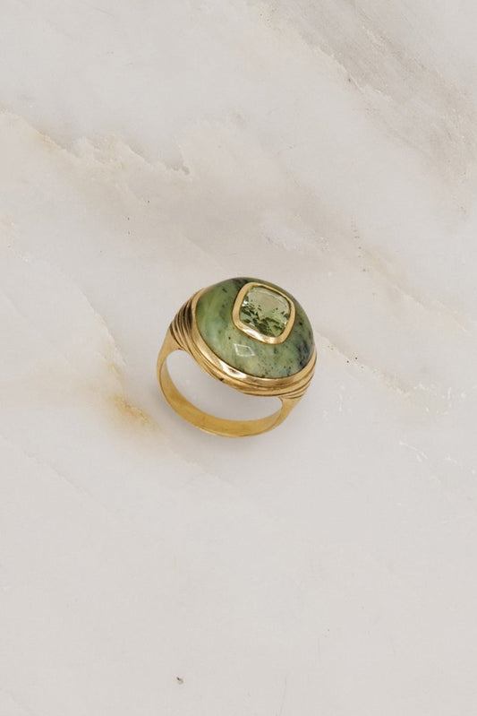 Petite Lollipop Ring with Green Tourmaline in Green Opal