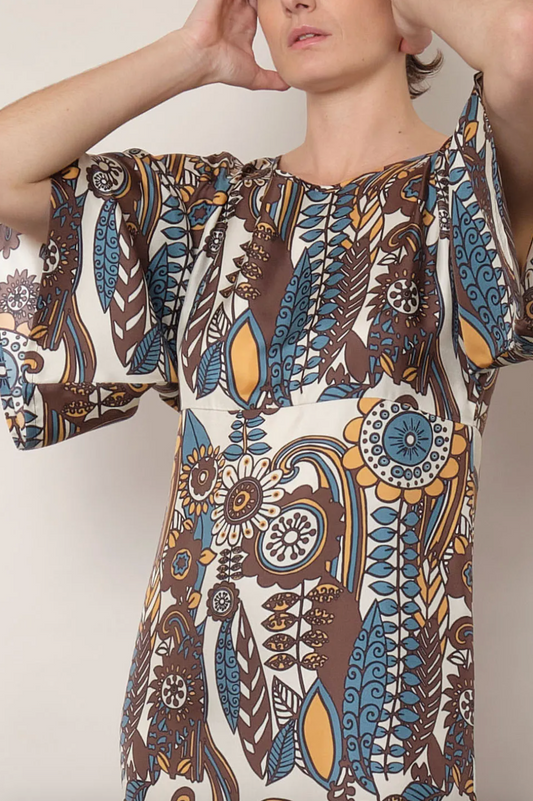Midday Dress in Blue Taupe Fiori