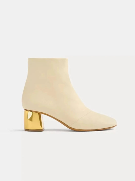 Golden Heel Leather Ankle Boots in Ivory