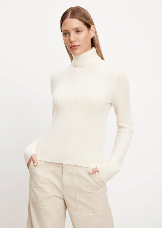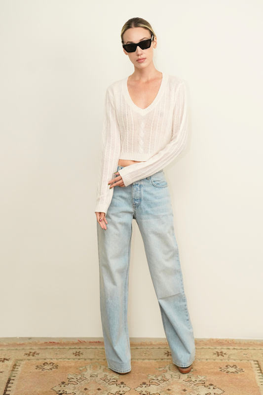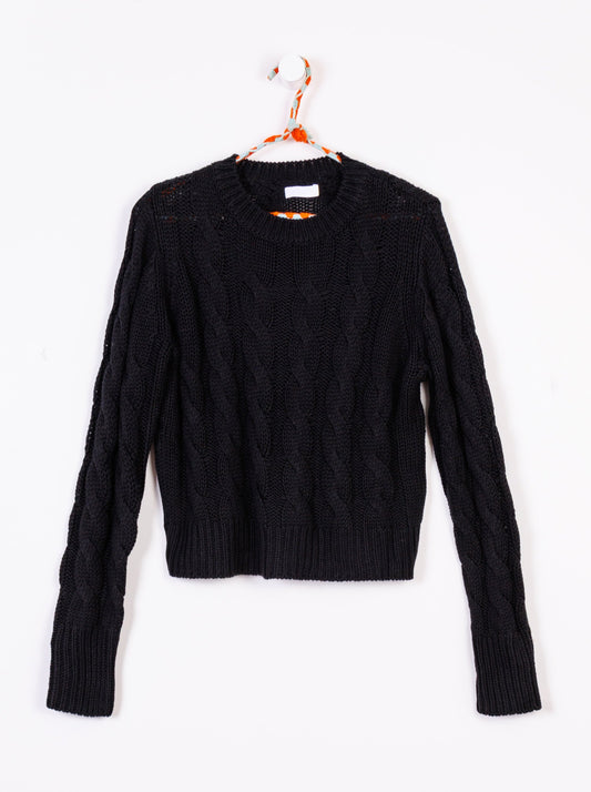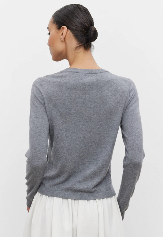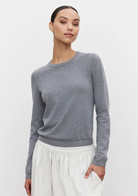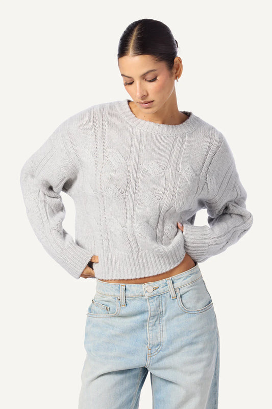 Tristan Cashmere Crewneck Cable Pullover in Foggy