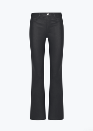 These ankle flares are cut from high-quality black leather with five classic pockets and a slight kick at the hem for movement. They fit true to size so the silhouette stays sharp from waist through ankle. Dress them up with heels or tone them down with sneakers, these are the kind of leather pants that stretch where it counts, and flatter everywhere.