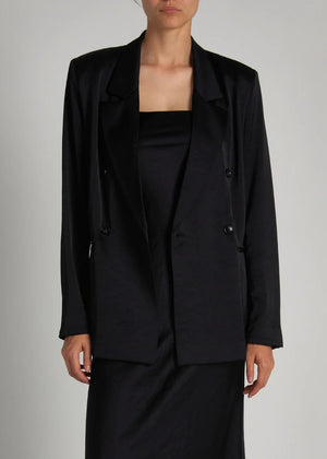 This double-breasted button down boasts a sensual and easy fit, perfect for an elevated evening look. Made from non-wrinkle charmeuse, it's also a must-have for travel.