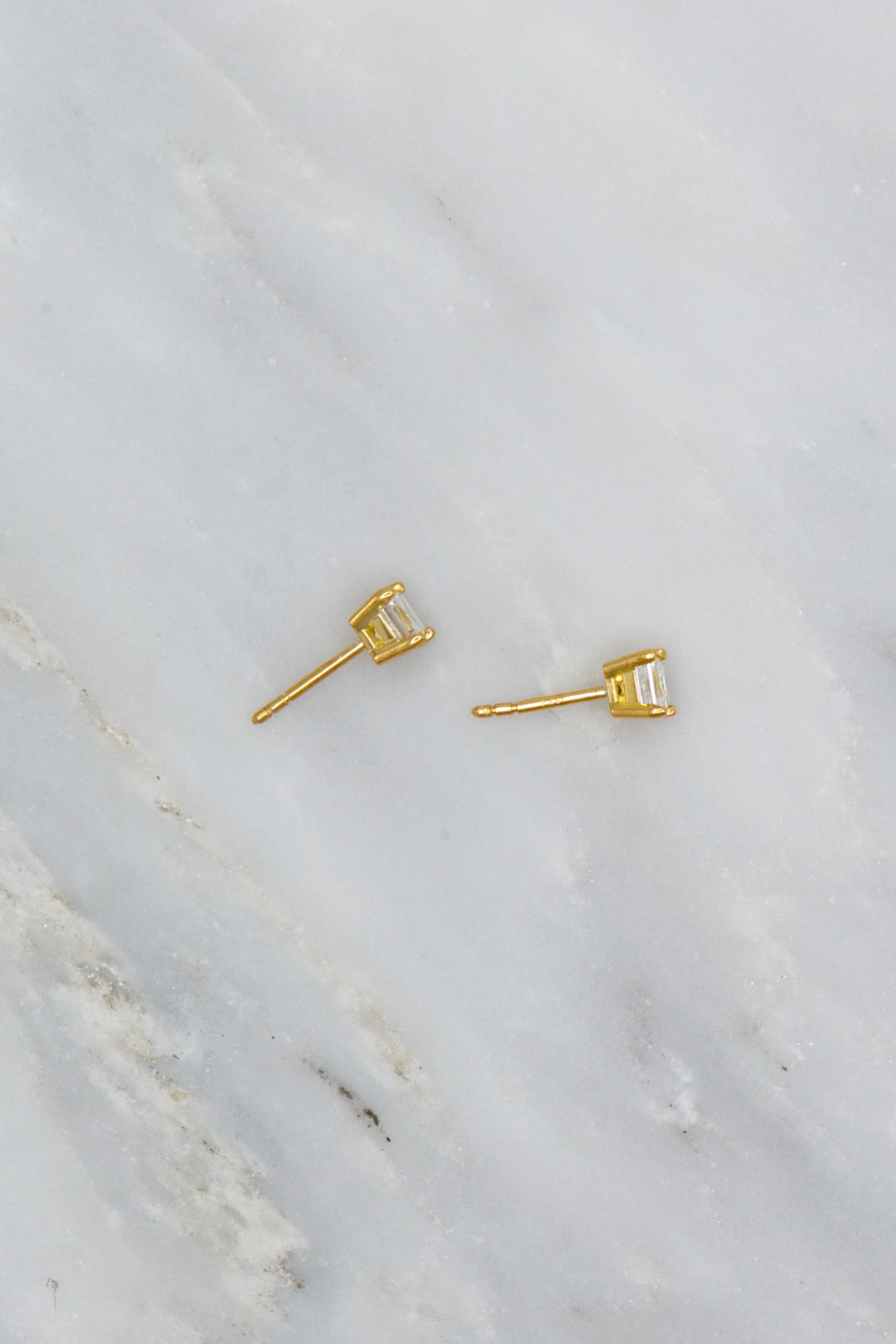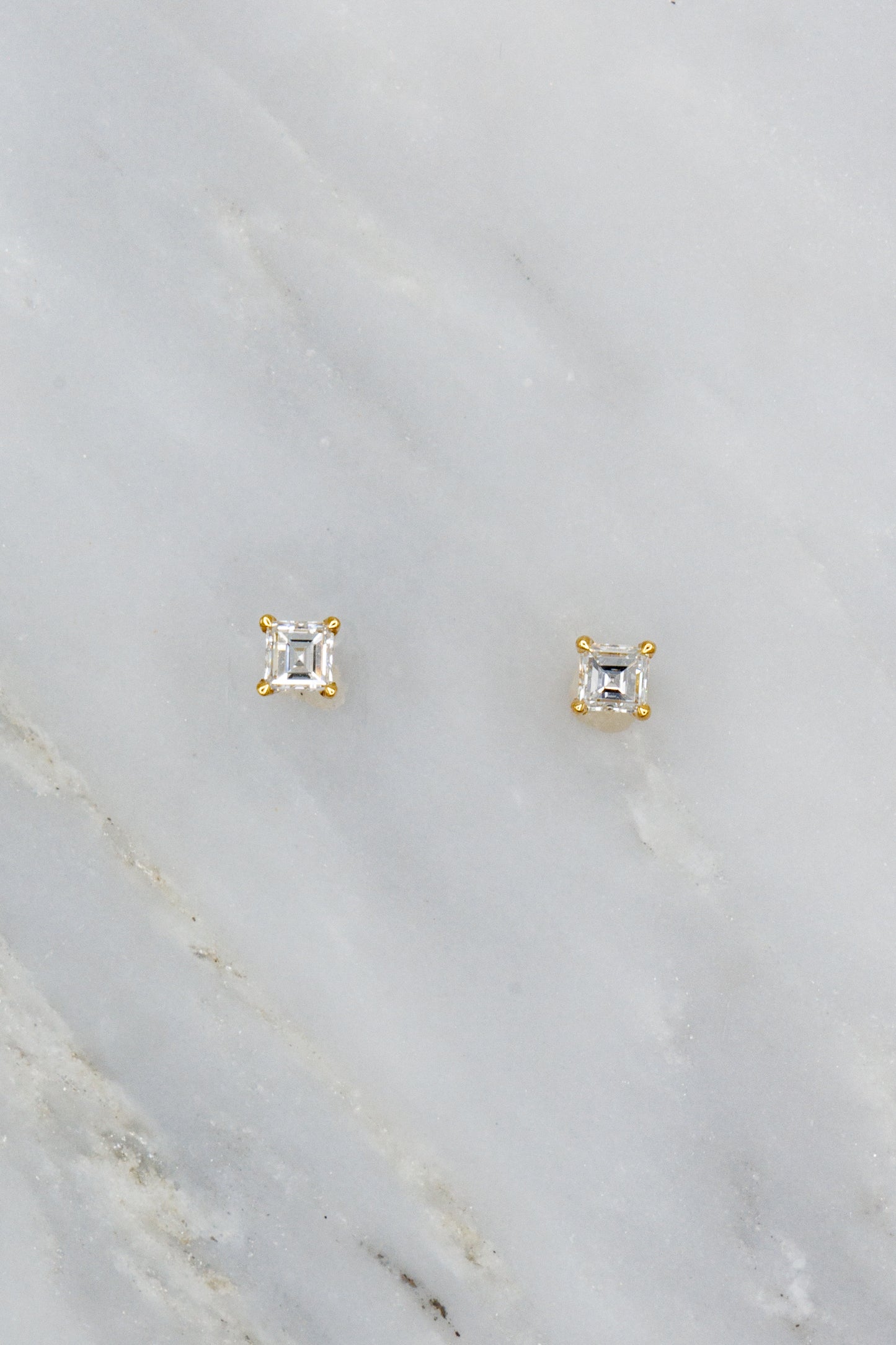 These diamond studs capture Azlee's signature blend of sophistication and undeniable coolness. Set with radiant, carré-cut diamonds, these studs make a refined yet bold statement. Each carré-cut diamond is bezel-set in rich 18k yellow gold, creating a sense of refined playfulness. Perfect for elevating any look — whether it’s adding a dash of glamour to your favorite jeans, or a polished touch to a more formal outfit.