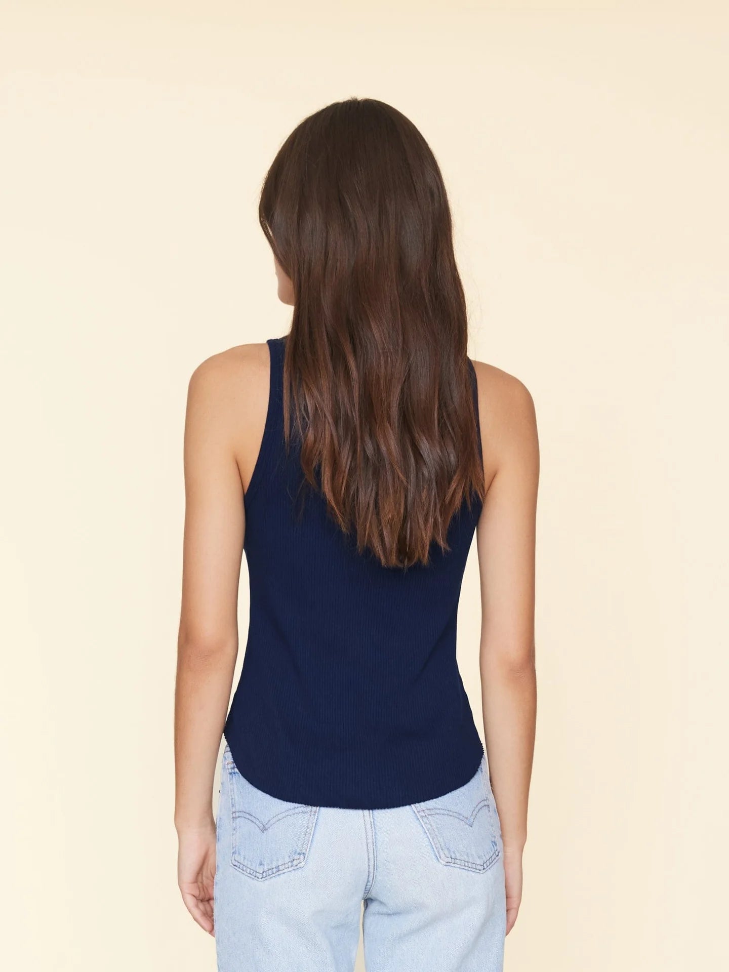Arynn is made in Xirena's stretch cotton rib knit. This soft cut away tank has a raw shirttail hem and is a staple layering piece.
