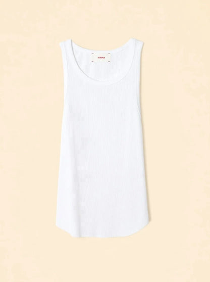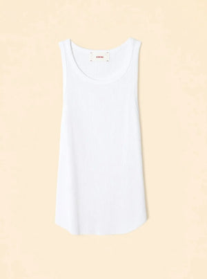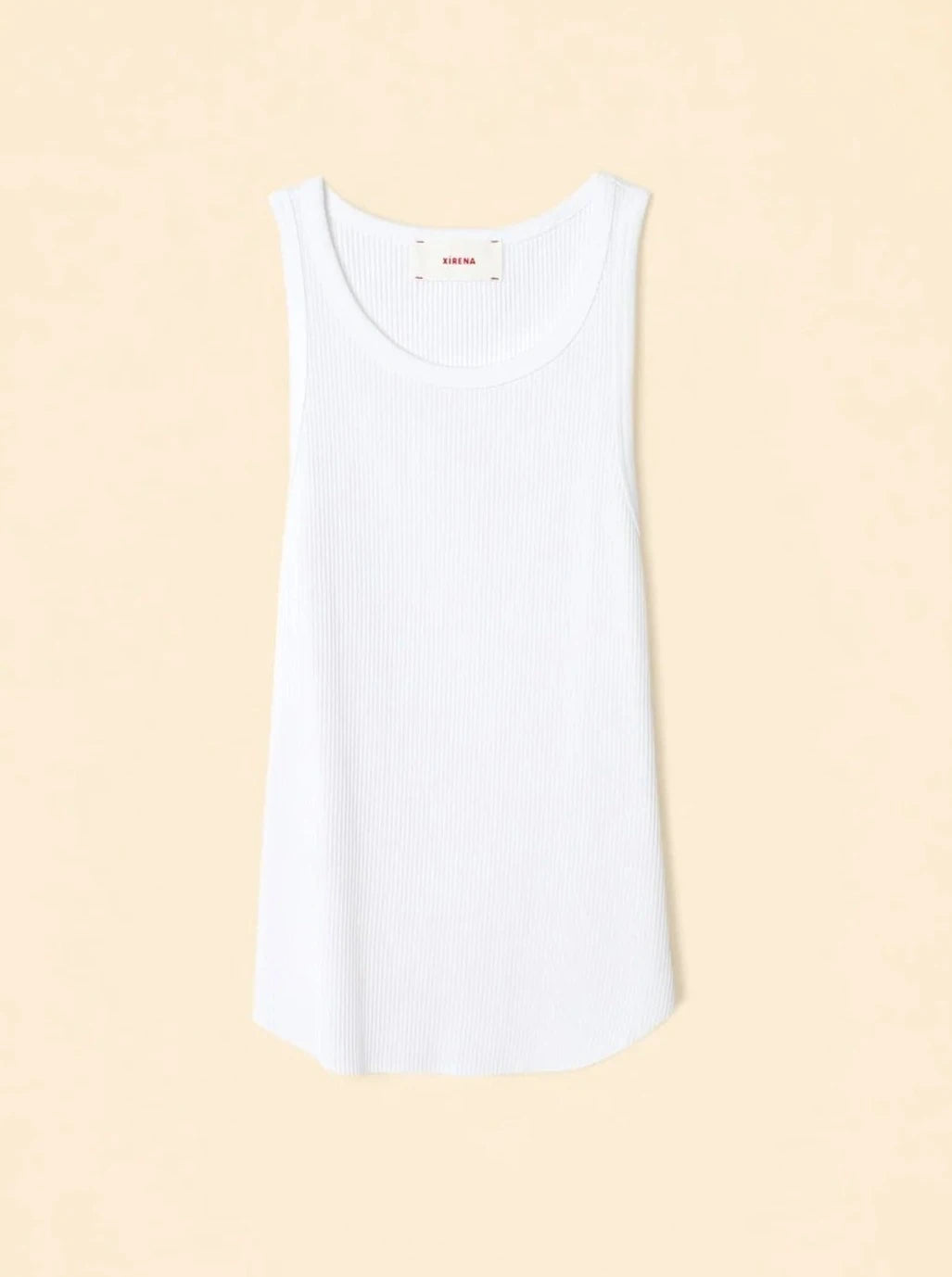 Arynn is made in Xirena's stretch cotton rib knit. This soft cut away tank has a raw shirttail hem and is a staple layering piece.