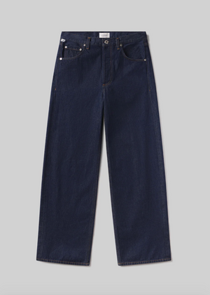 The Ayla jean offers a refined take on the baggy silhouette with a relaxed fit that sits away from the body while maintaining a clean, intentional shape. The Amherst wash—a deep, dark indigo rinse—adds polish to the laid-back cut. Crafted from rigid regenerative cotton with a soft hand, it’s an easy staple that styles effortlessly with everything from crisp shirting to slim knits.