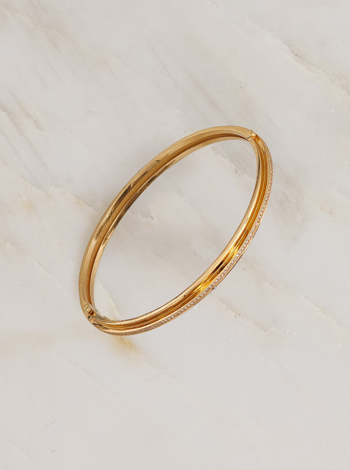 18k yellow gold bangle with diamond pave, made and hand-finished in LA.