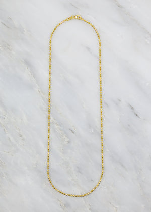 A perfect balance of minimalist design and bold elegance. Crafted in lustrous gold, each tiny ball in the chain catches the light, creating a subtle yet striking effect that’s ideal for layering or wearing solo.