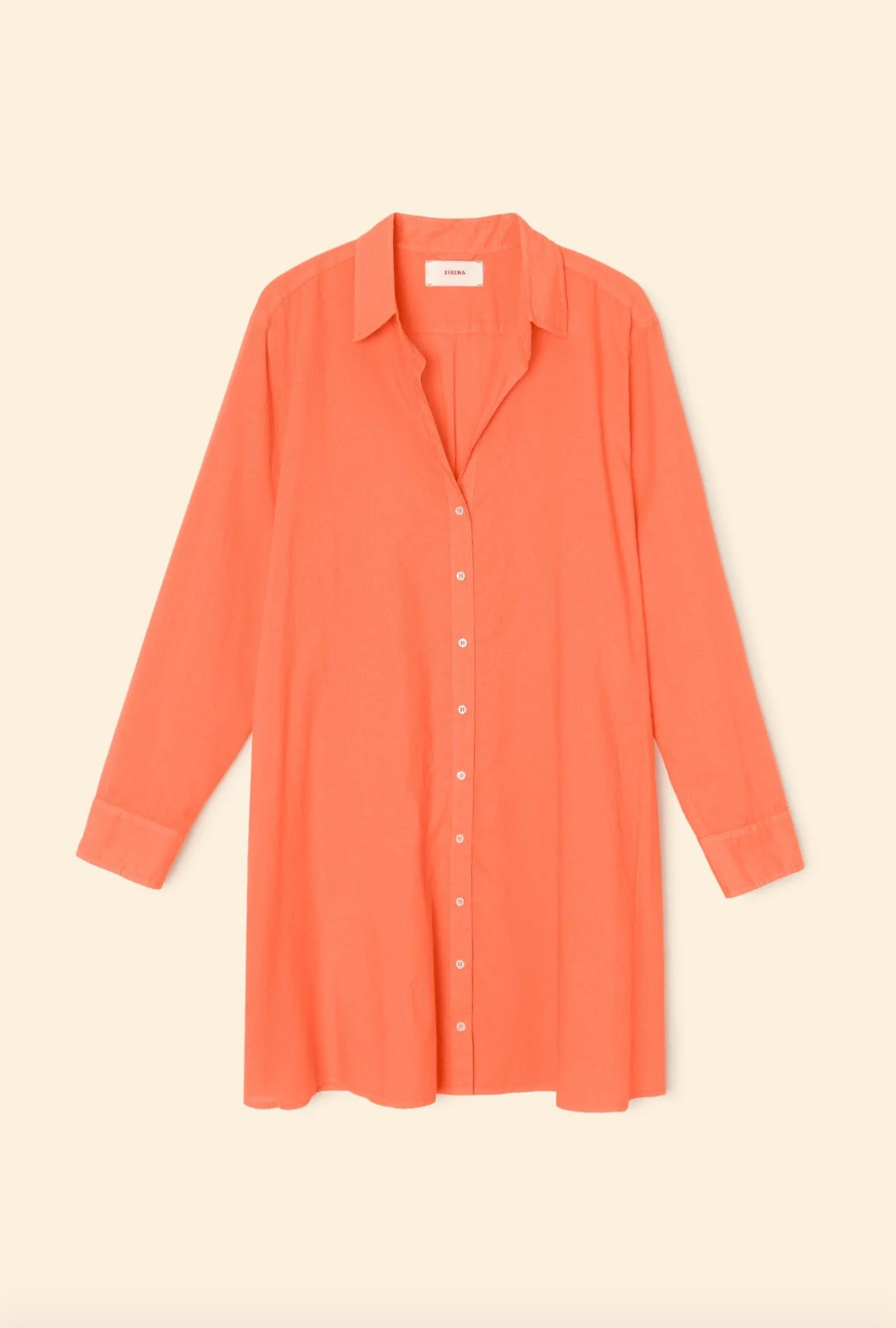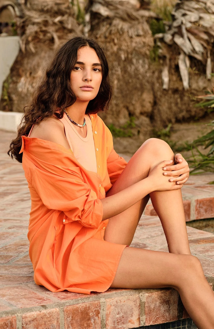 Made in Xirena's classic lightweight woven cotton poplin, Bobby is a tailored mini shirtdress with a button-front, side seam pockets, and hem side slits.