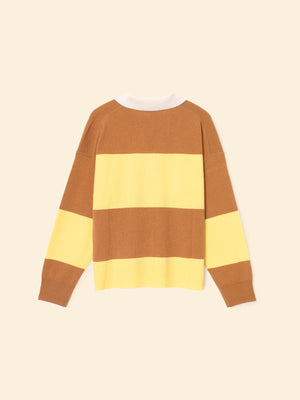 Striped Delight. Braxton is new this season in Xirena's ultra-soft striped cashmere wool blend. This rugby-inspired polo sweater features faux horn buttons and ribbed cuffs and hem.