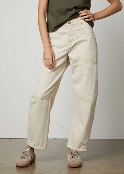 Crafted from a sturdy cotton twill, this casual trouser has a modern line with a subtle, vertical seam at the knee that lends a cool curved silhouette. Utilitarian-inspired patch pockets on the front and rear.