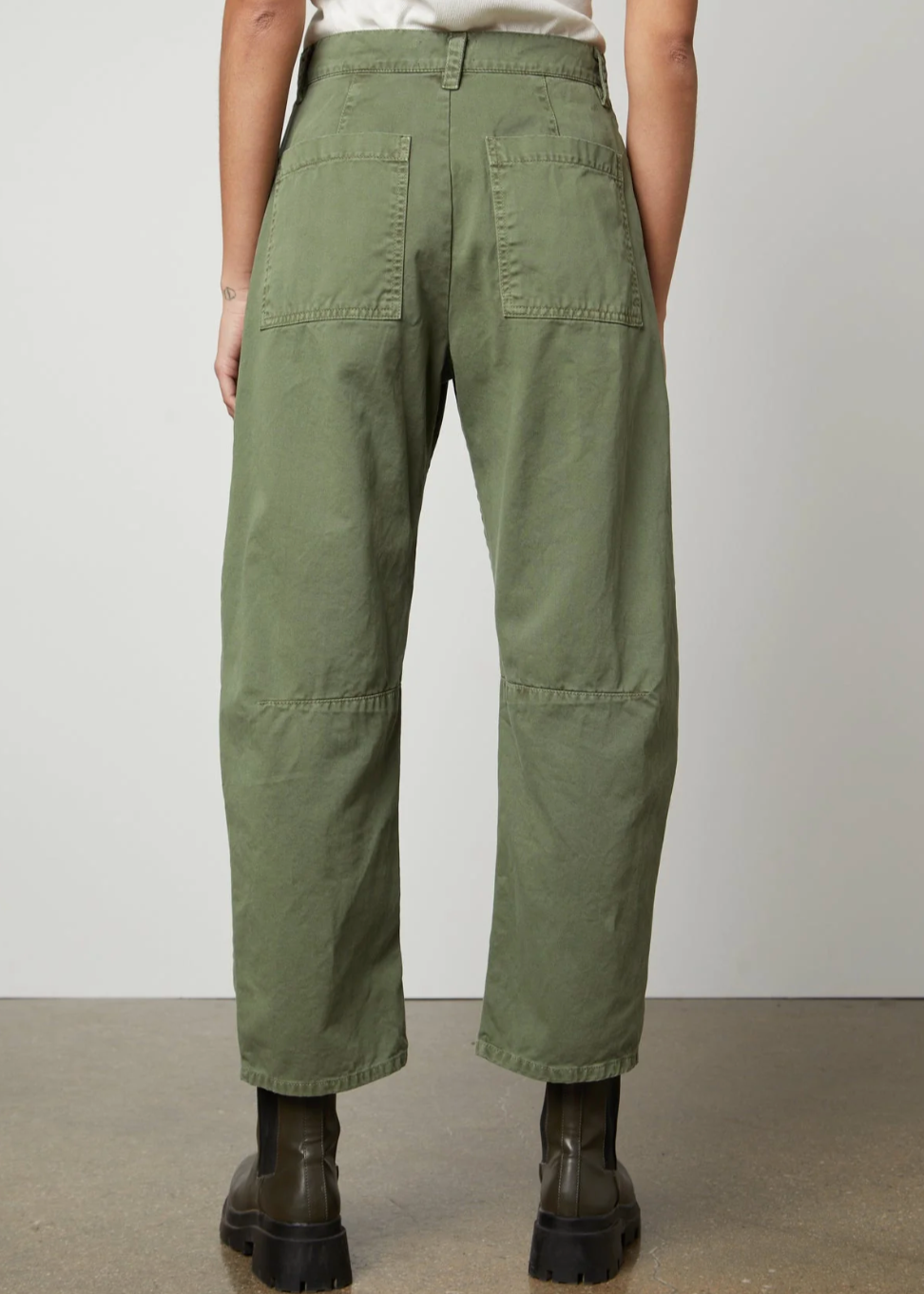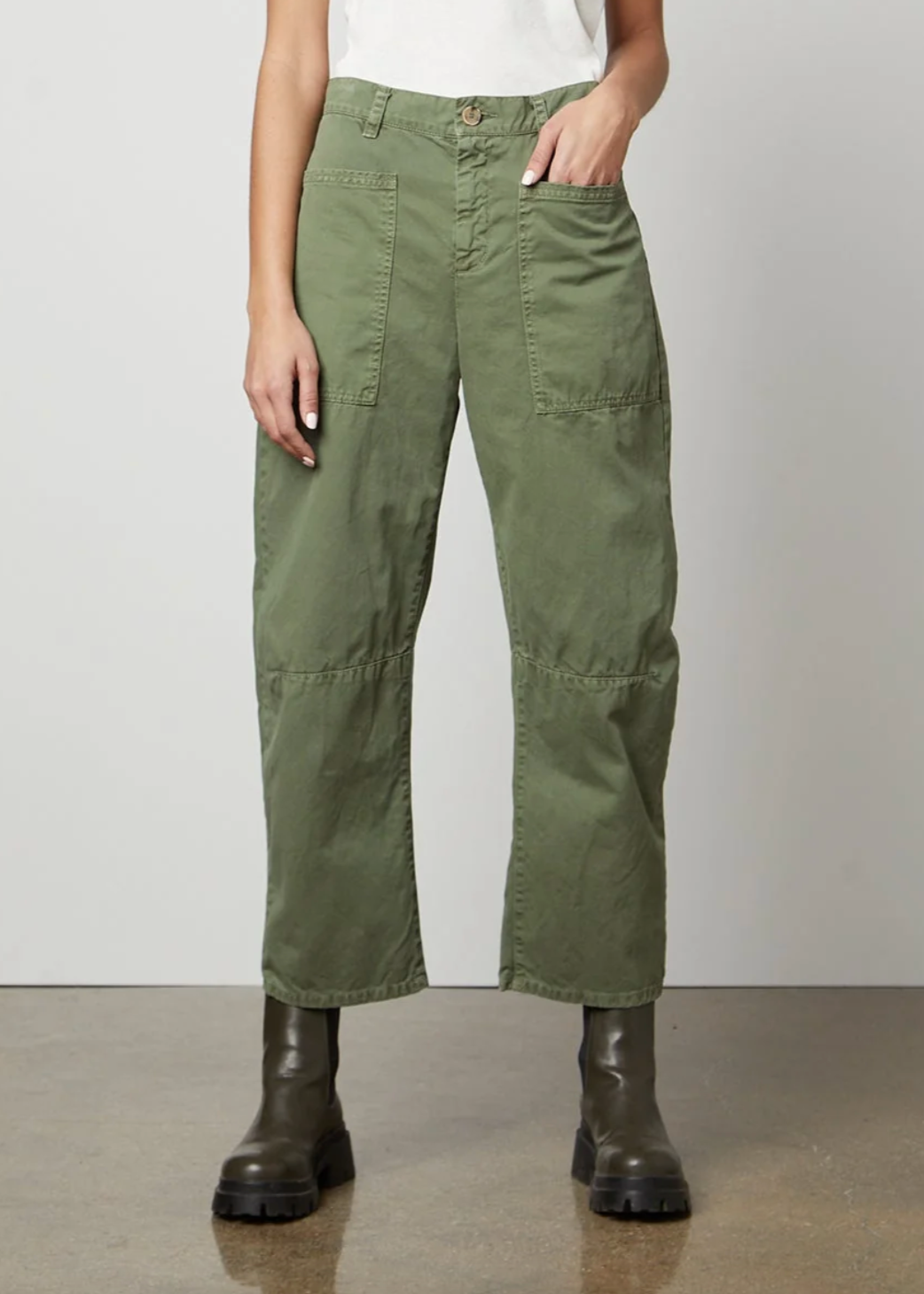 Crafted from a sturdy cotton twill, this casual trouser has a modern line with a subtle, vertical seam at the knee that lends a cool curved silhouette. Utilitarian-inspired patch pockets on the front and rear.