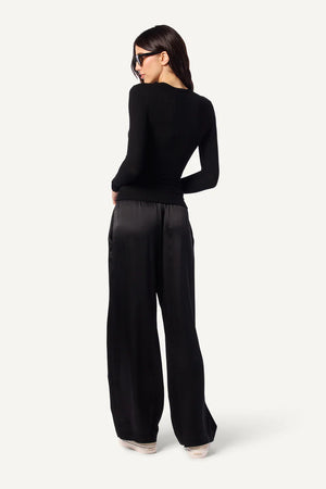 Crafted from 100% pure silk, this wide-leg pant is both stylish and practical. The sewn-in waistband provides a comfortable and flattering fit, while the pockets add a touch of functionality.