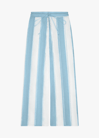 This bold intarsia stripe pant, featuring delicate pointelle detailing, gives a fresh twist on a classic Calle Del Mar silhouette. The playful, multi-colored stripes create an elongating, figure-flattering illusion that elevates your vacation style. This wide-leg knit pant embodies what it feels like to be a Calle Del Mar girl: laid back, luxurious, and always ready for the next getaway. Wherever you are, the Cabana Stripe Pant will make you feel like you're on vacation. Throw on these feel-good pants with the matching cabana stripe shirt for chic & easy day-to-night wear.
