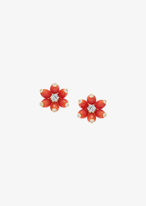 18k Yellow Gold, Diamonds (0.26cttw), Carved Coral, Lapis, White Agate, or Turquoise