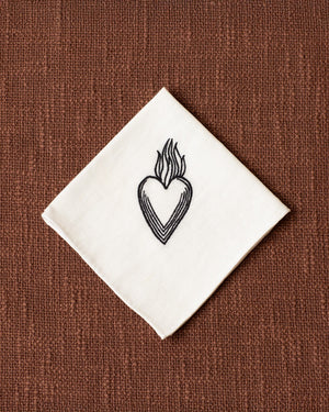 Given as tokens of love and good luck, our linen-cotton blend handkerchief is embroidered with a fiery heart. Measurements: 12 × 12 inches.