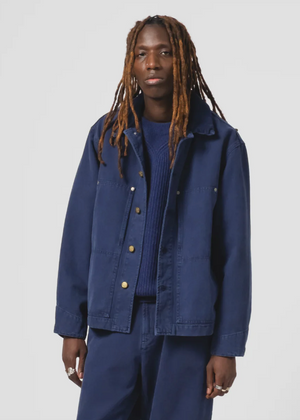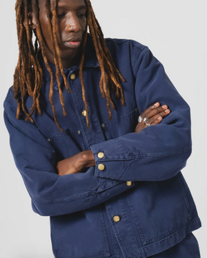 The Arizona Jacket is designed with the short, boxy fit of a worker jacket combined with the details of an archival carpenter double-knee pant, with knee patches repurposed and transformed into four large, functional pockets.