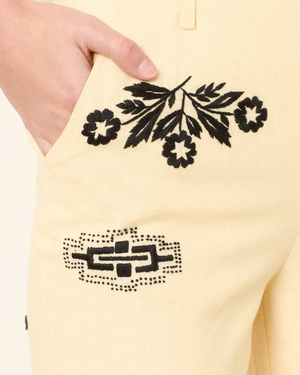 Western edge meets artisanal craft in these silk linen pants from Alix of Bohemia. Cut slim through the hip with a subtle flare, the Charlie Pant is hand-embroidered with bold tattoo-inspired symbols that nod to the spirit of the American West. Each pair is cotton-lined for comfort and finished with the label’s signature attention to detail, making them as wearable as they are collectible.