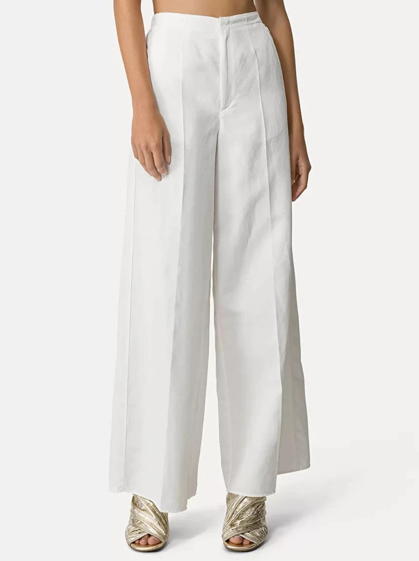 The contemporary cool of a pair of palazzo pants takes on renewed vigour in this cotton–gabardine version. With a high–rise pared–back aesthetic, the ironed crease elongates the leg.