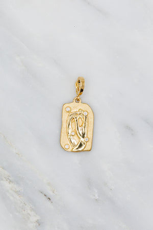 Inspired by Rodin’s famous sculpture, this pendant features a beautifully textured coin design with symbols that represent connection and the meeting of two souls. A must-have for those who appreciate distinctive jewelry that tells a story. This coin comes on a charm clasp that opens and closes, and can be taken off or put on any chain. Made and hand-finished in LA, each Azlee piece helps ocean-related causes.