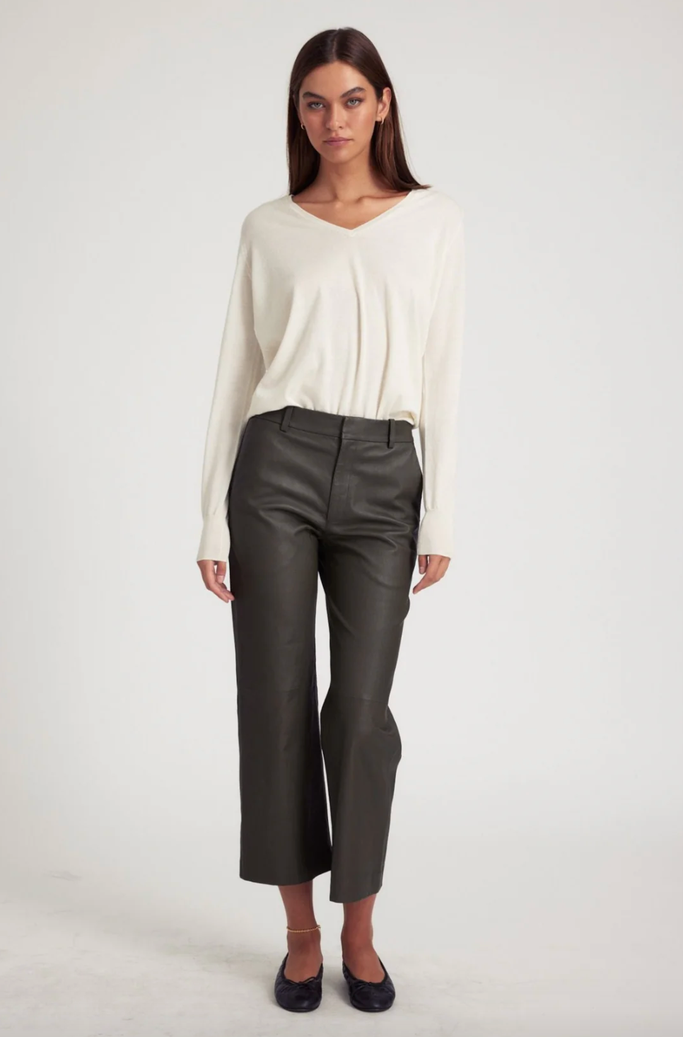A luxurious cropped take on a classic trouser made in buttery-soft, stretch-leather. Featuring two functional pockets and a concealed zipper.