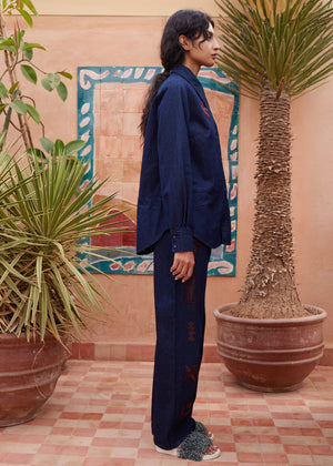 A familiar shirt, but not the denim you’ve seen a thousand times. The Delany Shirt by Alémais elevates everyday tailoring through unexpected detail. Structured yet relaxed, its classic silhouette is punctuated with subtle embellishment against the indigo denim. Wear it open over a tee, tucked into denim, or with suiting for an off-beat contrast.